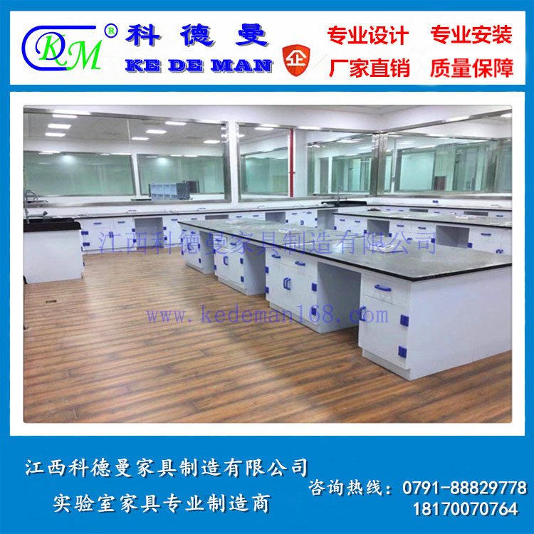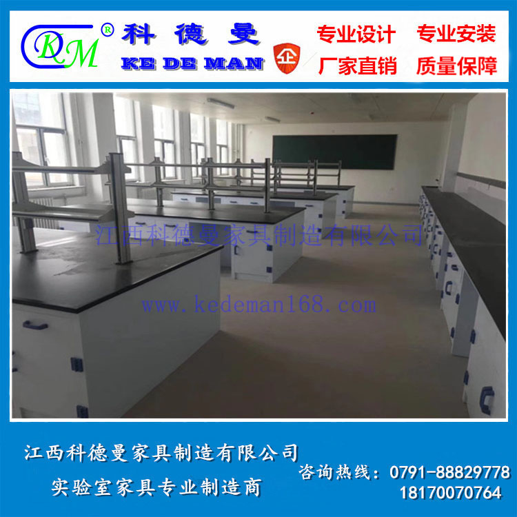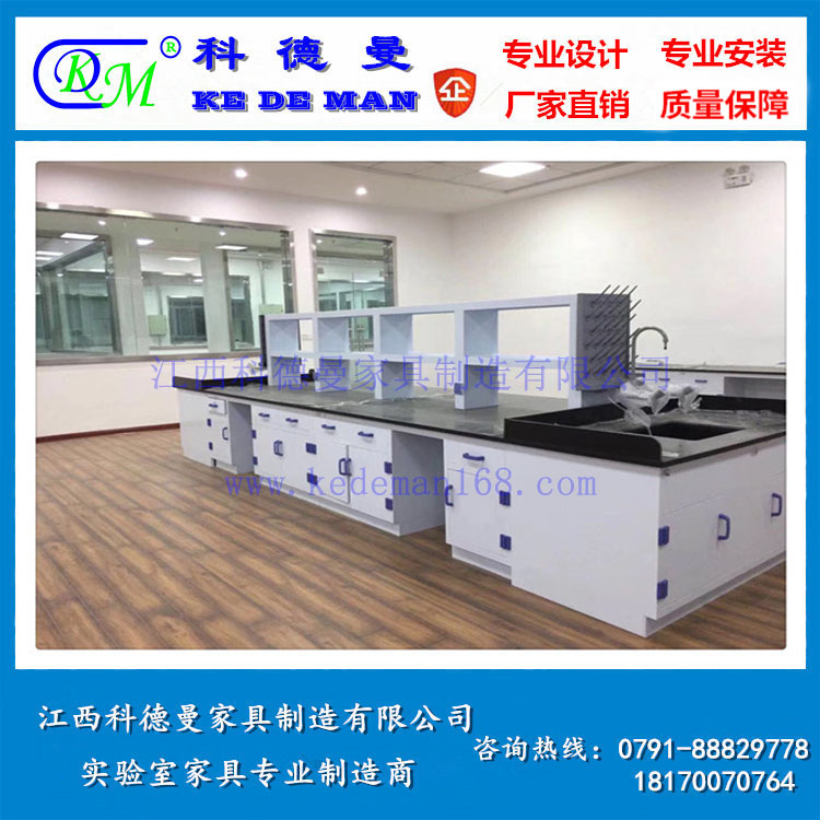 台面采用8mm厚优质纯料PP(聚丙烯)板制作具有耐强酸碱性能,或使用实芯理化板(12.7mm厚)耐冲击,耐腐蚀,甲醛达到E1级别标准。