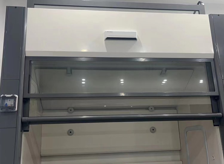 控制面板:液晶控制面板,可控制整个电路系统,含插座、照明等,方便实用;主电进入设计方式采用三段式控制,大大提高通风柜用电性能;