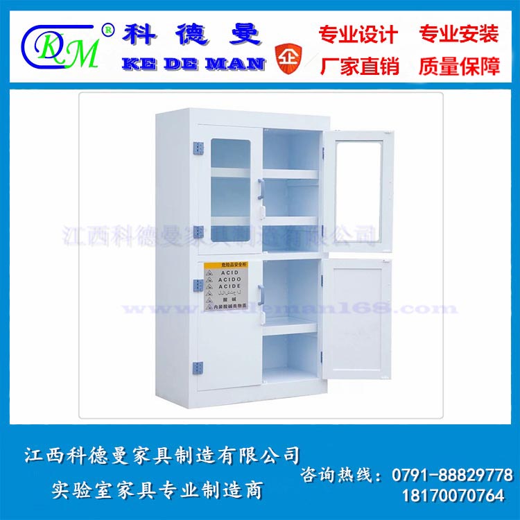 主体左右旁板、背板、底板、门板、抽屉板均采用8mm厚优质纯料PP(聚丙烯)板制作,具有耐强酸碱性能。顶部边沿加宽稳定、承重性能更好。对接处均采用同色焊条专业手工经无缝焊接而成,抗强酸、化学药品,耐冲击,不腐蚀,不生锈。